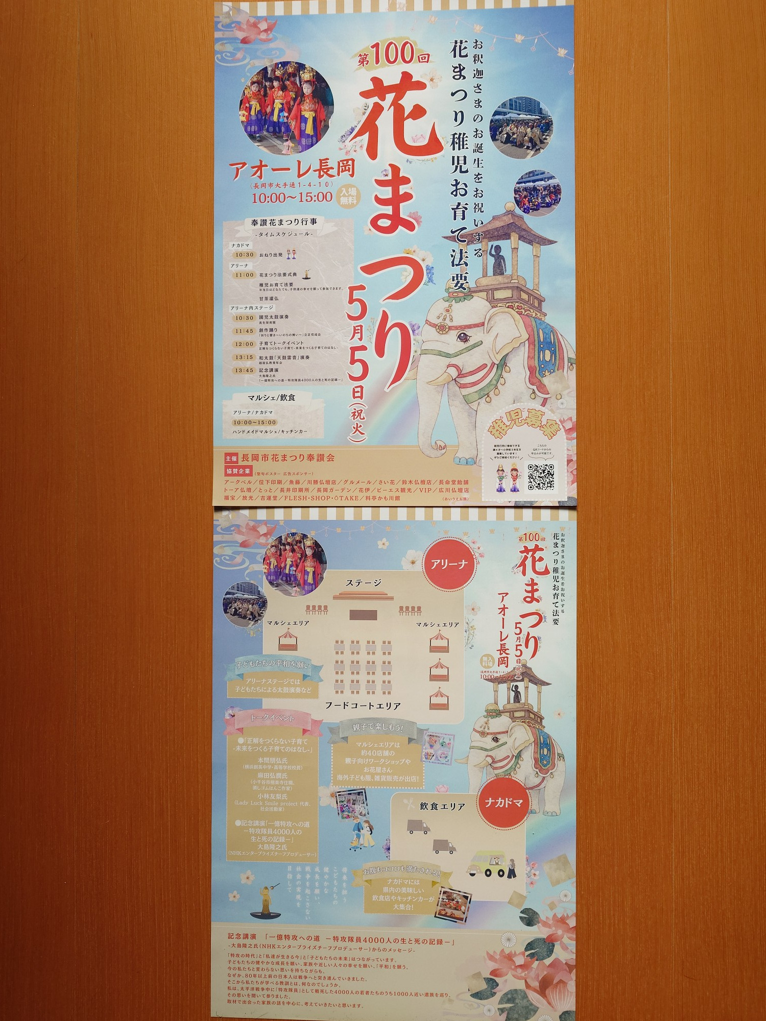さて、5月5日(祝火)アオーレ長岡において、第100回 長岡市花まつり 稚児お育て法要が開催されます。